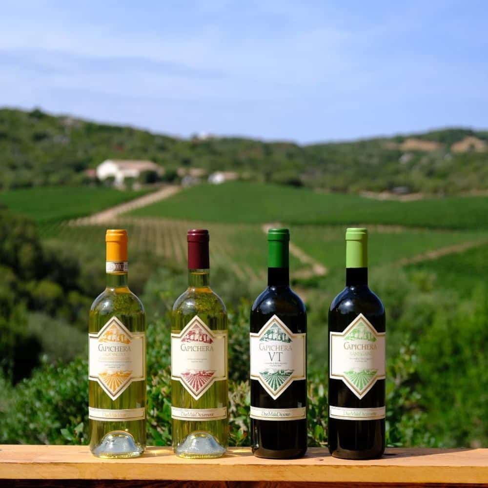 I vini Capichera vengono elaborati da Vermentino ma anche da vitigni a bacca rossa strutturati come il Carignano.