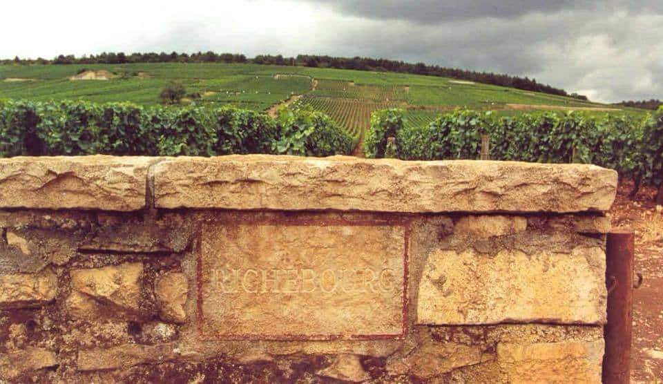 Richebourg Grand Cru (3,51 Ha): Poco meno della metà del vigneto (3,51 Ha su 8,03 Ha) appartiene a DRC, distribuito su diverse parcelle. Le viti hanno una media di oltre 50 anni. Sempre un vino robusto e dal colore abbastanza profondo.
